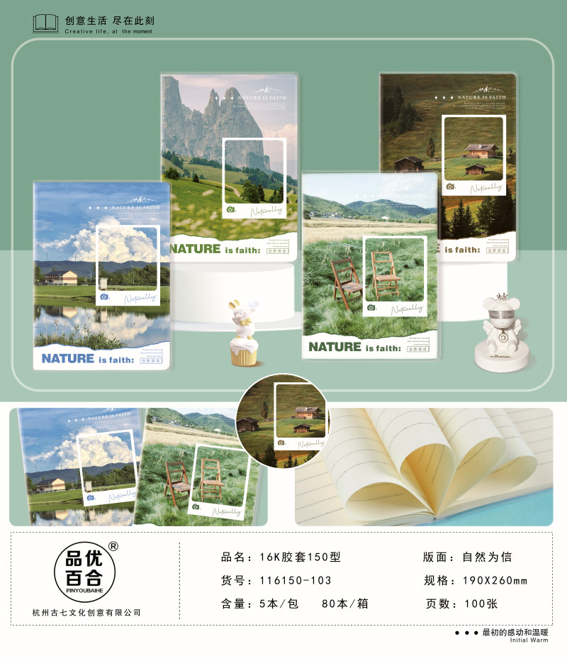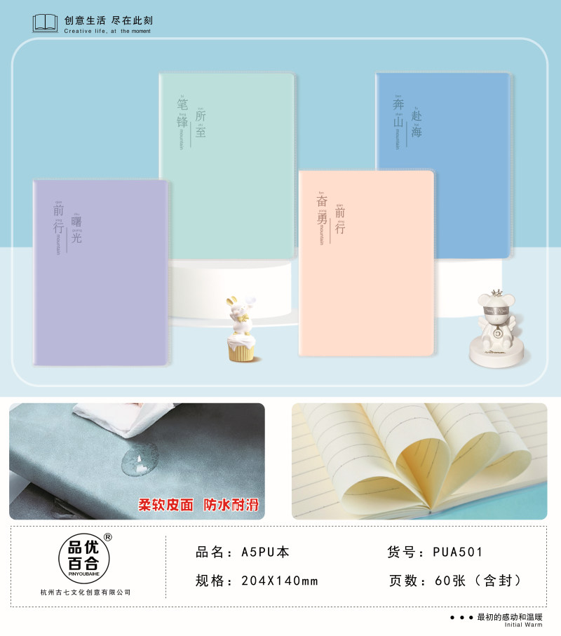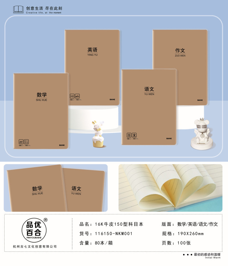 南宫市出彩文化用品有限公司创立于1997年,旗下品牌有"古七、念初语、品优百合"等品牌,是一家专业研发和制造学生本册的大型生产基地,我们的产品远销于海内外多个国家和地区,为全球30多亿学生提供优质的服务,我们要把精美的产品带入到每个学生和每个家庭当中,构建美好的书写新体现。本公司一贯坚持"质量第一,用户至上,优质服务,信守合同"的宗旨;以"合理的价格"、"高质量的产品"、"准时的交货期""良好的信誉服务"为基本准则。本公司期待成为您忠实的朋友和合作伙伴,共创互惠双赢的未来!