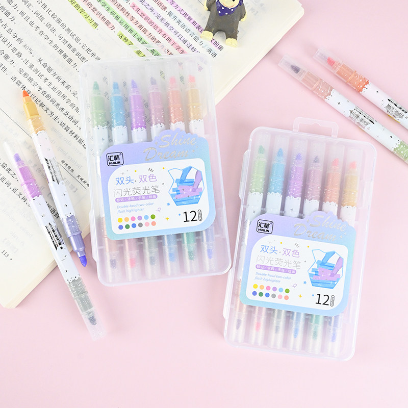 12色双头双色闪光荧光笔