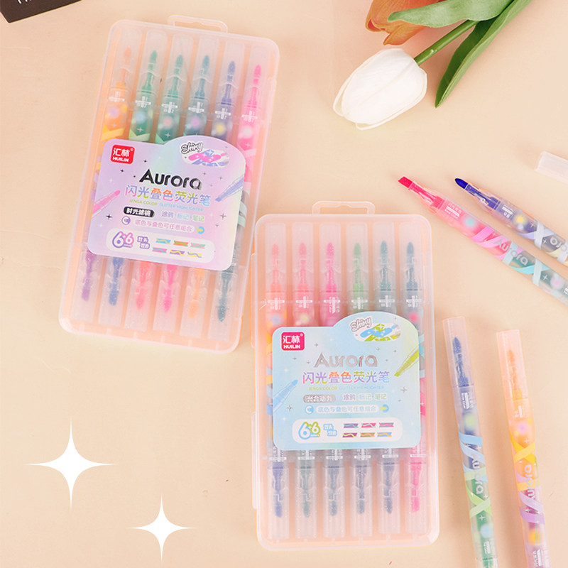 12色叠色闪光荧光笔