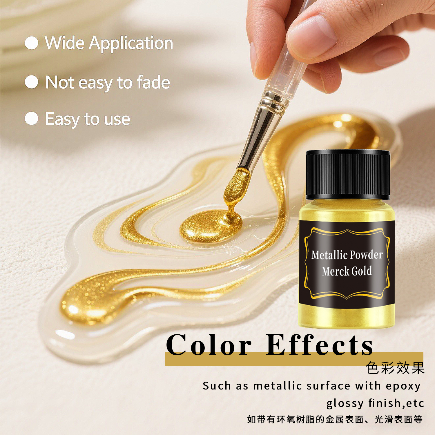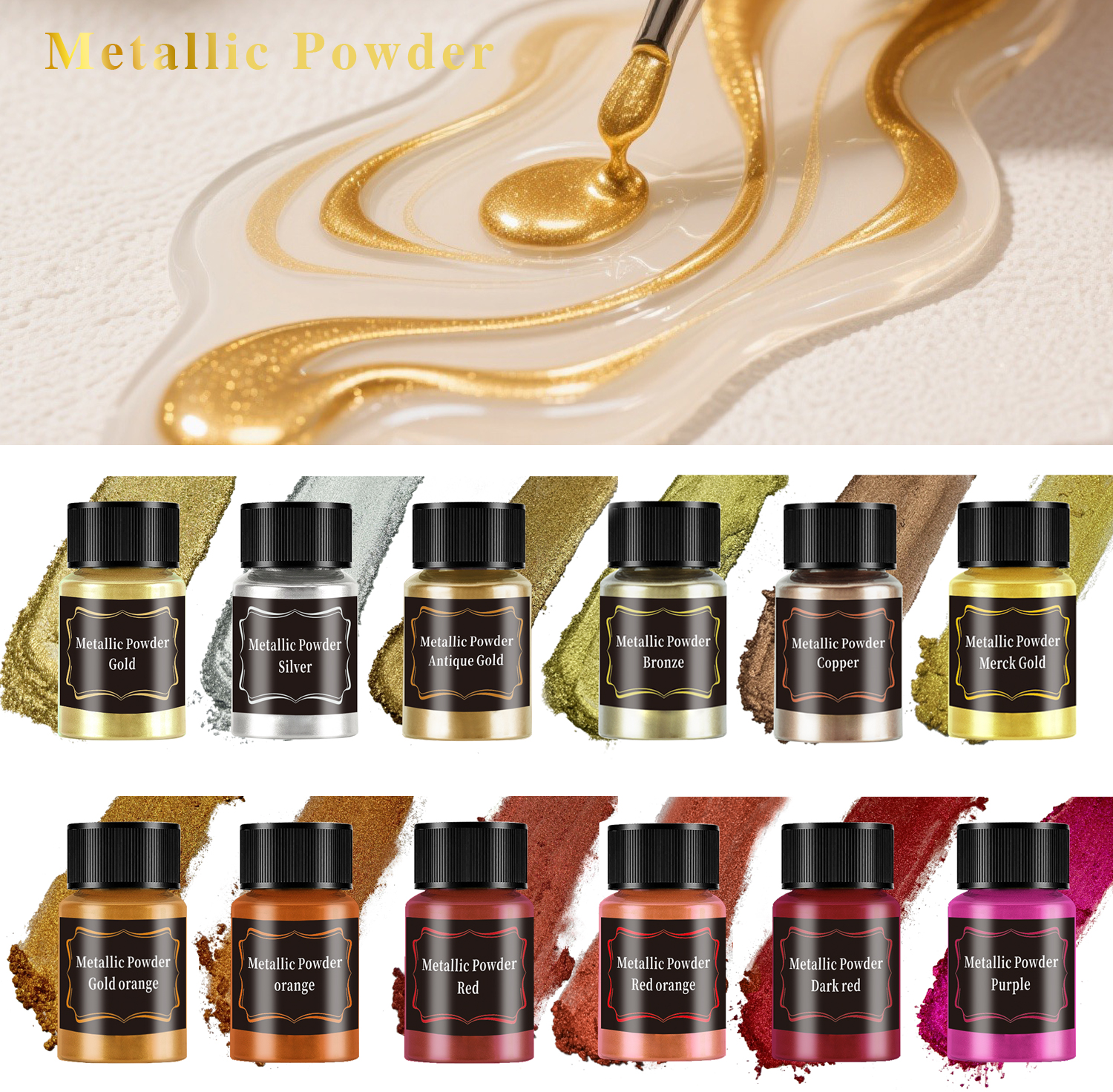 Metal powder is ideal for epoxy resin crafts, DIY projects, slime, phone cases, greeting cards, paintings, and more. This vibrant pigment creates a subtle metallic sheen.