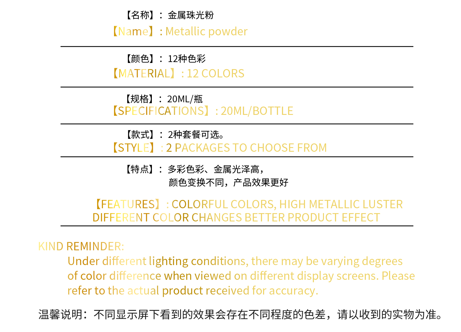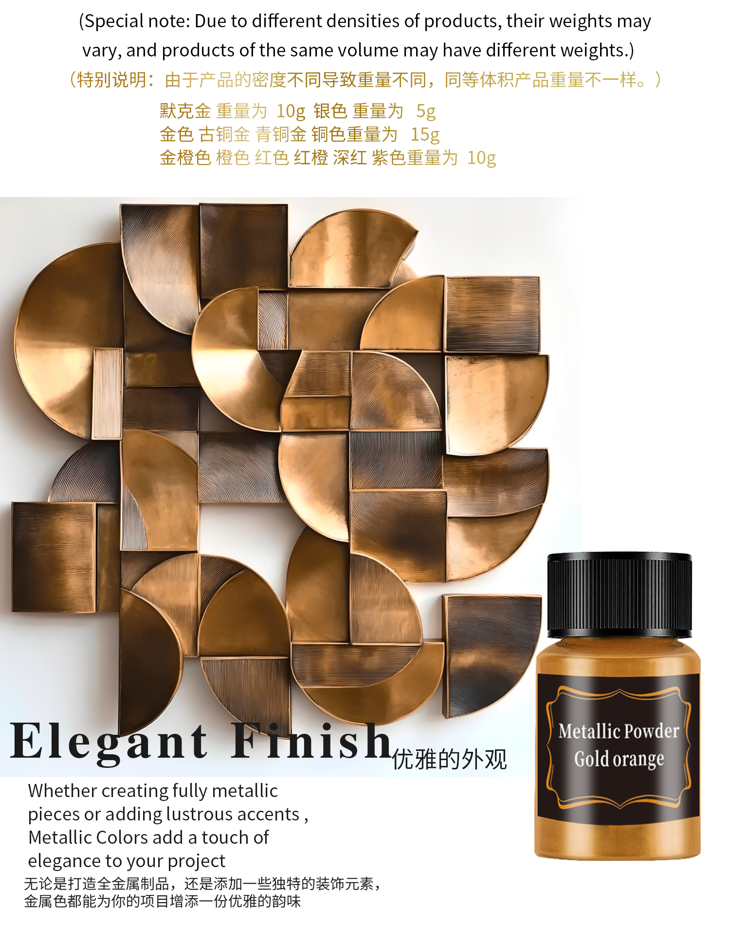 金属粉非常适合环氧树脂工艺品、DlY 项目。史莱姆、手机壳、贺卡、绘画等。这种鲜艳的颜料可以创造出一种微妙的金属光泽