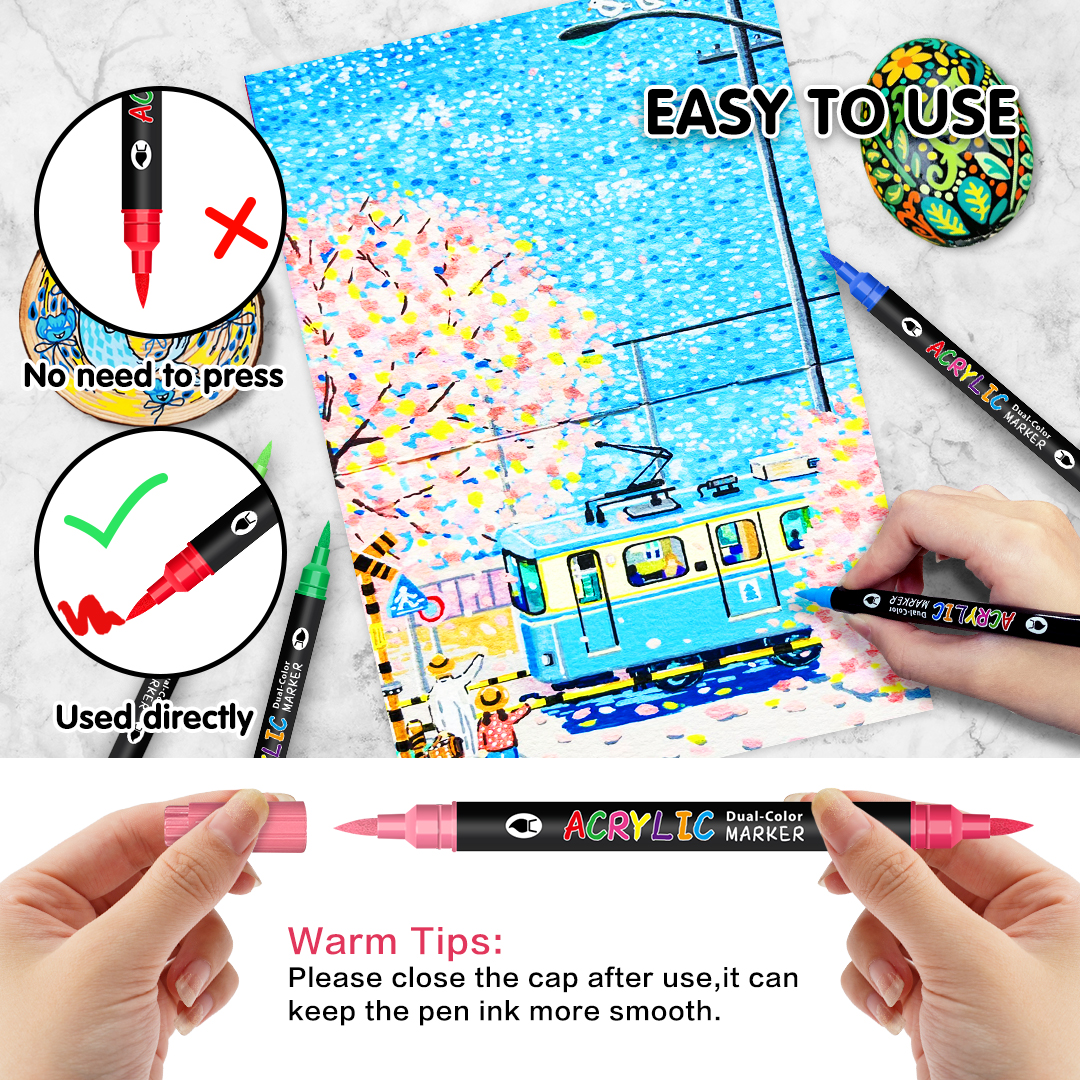 Water-based double-headed dual-color 48-color acrylic marker pen set, soft-headed painting and art DIY acrylic pen
