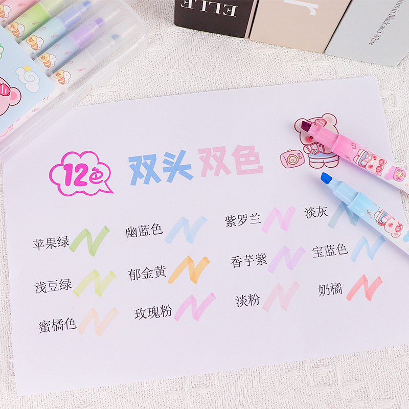 12-Color Double-Ended Bicolor Highlighters