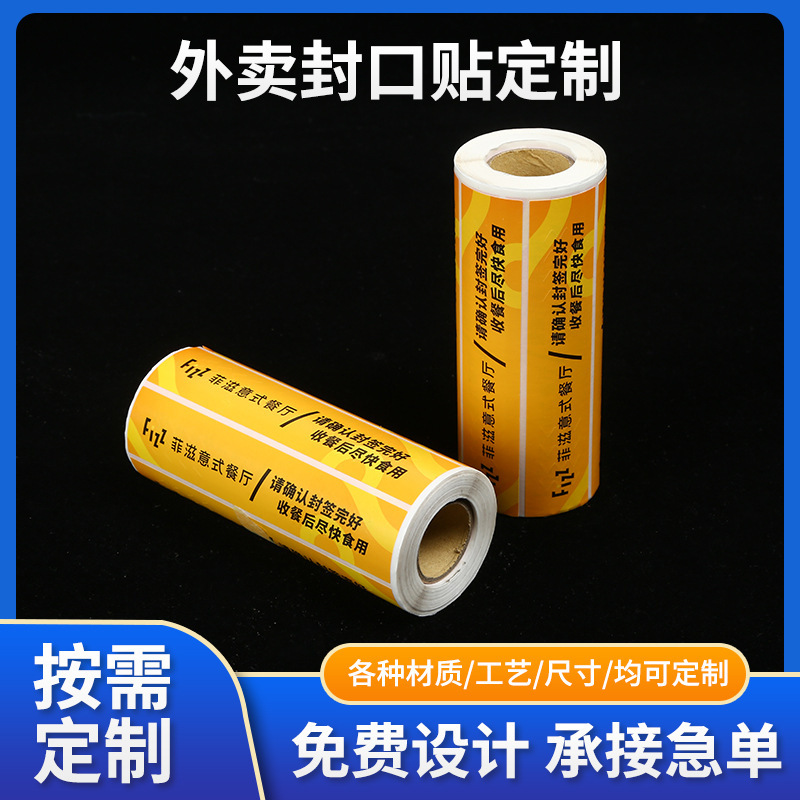 - Smooth printing, compatible with label printersApplications: Food delivery, takeaway, restaurant, milk tea shop, catering packaging, food container sealing, security sealService: Factory direct supply, support custom logo and design.