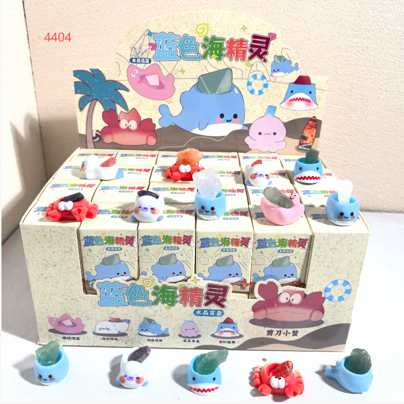 Blue Sea Fairy” is a crystal blind box collectible toy inspired by marine creatures. It combines natural crystals with adorable marine creature designs to create a cultural and creative item that is both visually appealing and soothing. The product features 5 different cute designs, such as small whales, small sharks, and small crabs.