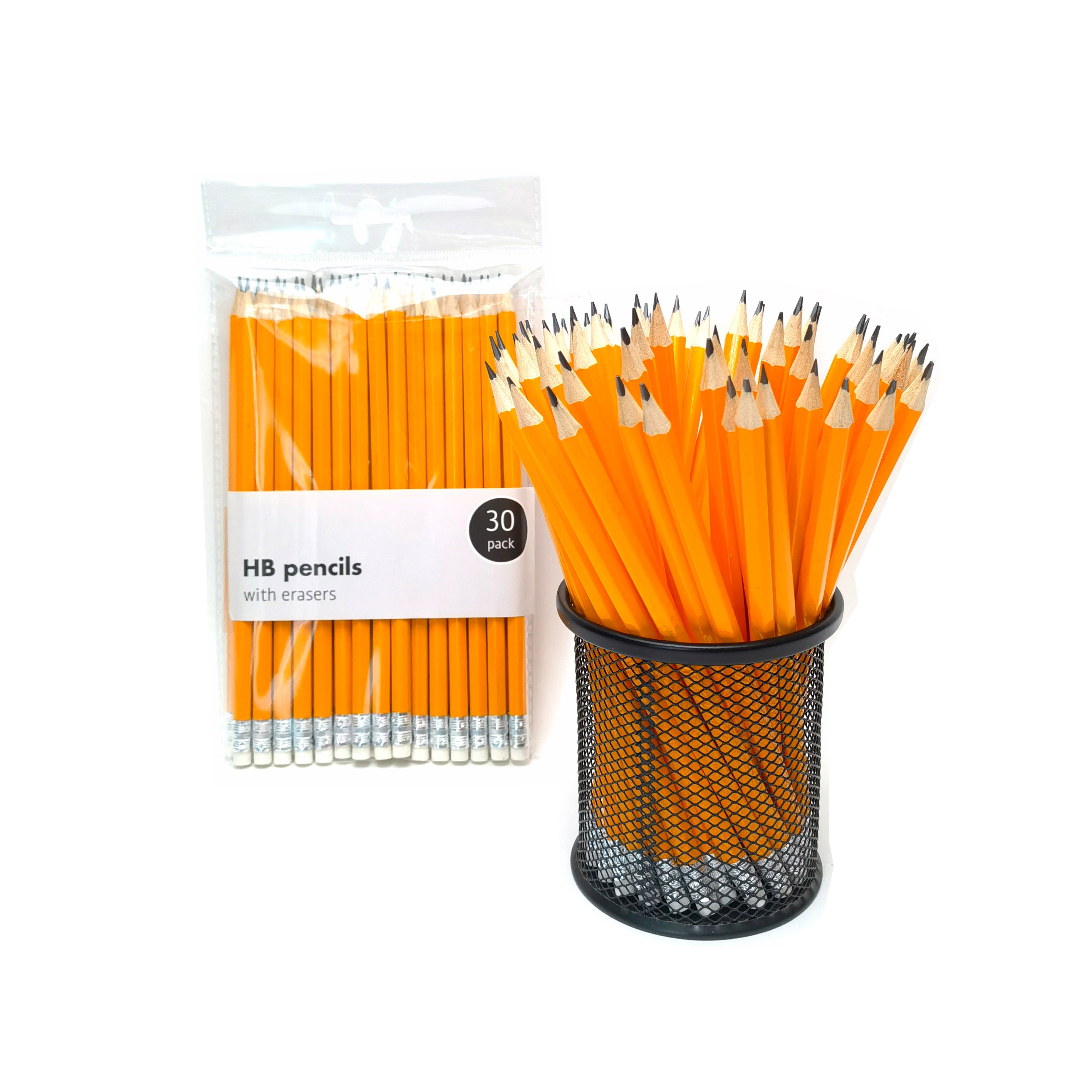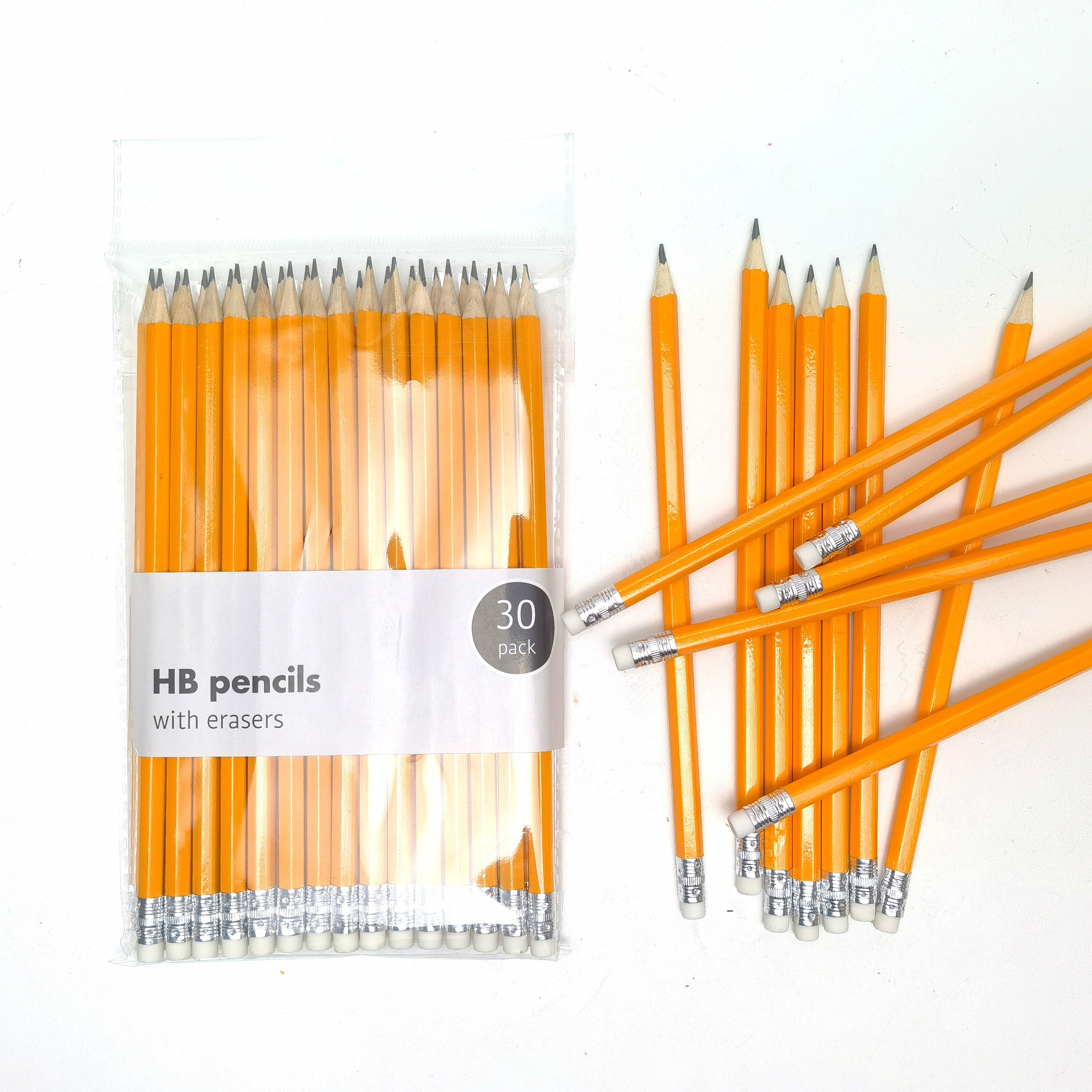 12 black 2B pencils with small eraser tops