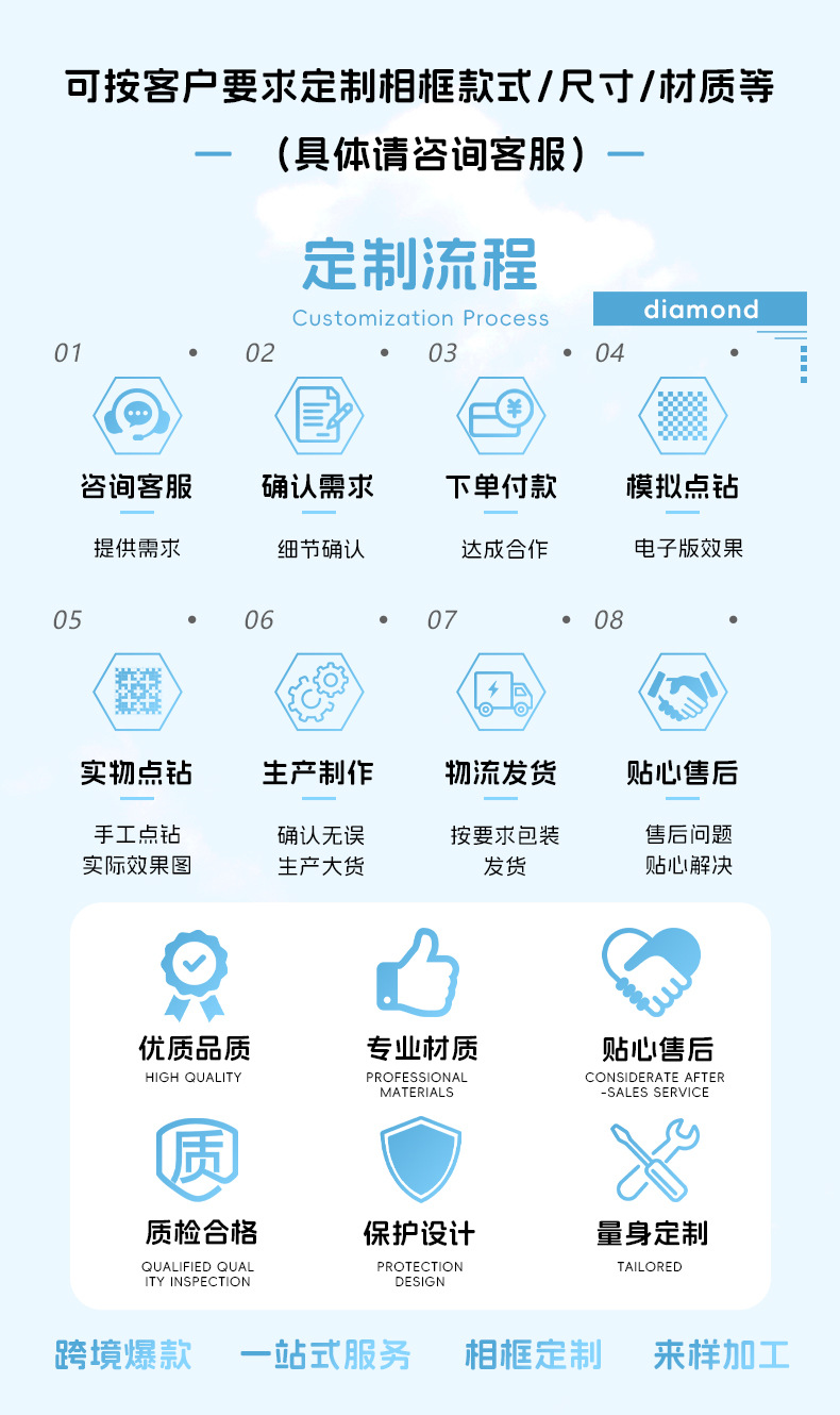 | 货号 | TY01 | 尺寸 | 精修圆钻满钻【画心尺寸 30X40 CM】,精修方钻满钻【画心尺寸 30X40 CM】,精修圆钻满钻【画心尺寸 40X40 CM】,精修方钻满钻【画心尺寸 40X40 CM】,精修圆钻满钻【画心尺寸 40X50 CM】,精修方钻满钻【画心尺寸 40X50 CM】,精修圆钻满钻【画心尺寸 50X50 CM】,精修方钻满钻【画心尺寸 50X50 CM】,精修圆钻满钻【画心尺寸 50X60CM】,精修方钻满钻【画心尺寸 50X60CM】,定制钻石种类,定制画布种类,白边LOGO等要求,更多要求联系客服 |