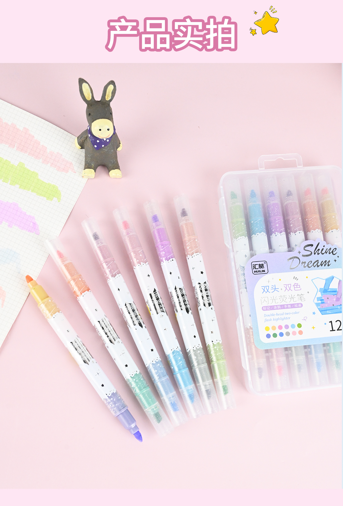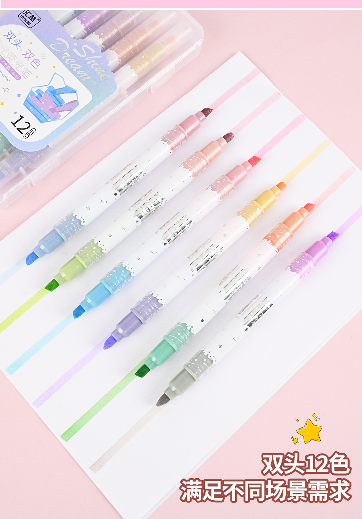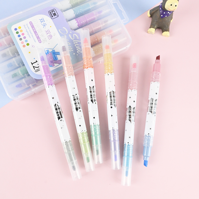 12色双头双色闪光荧光笔
