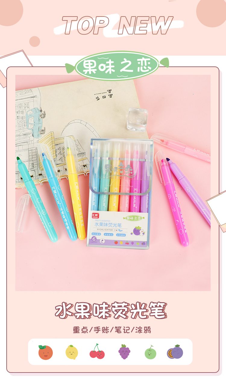 6色水果味荧光笔