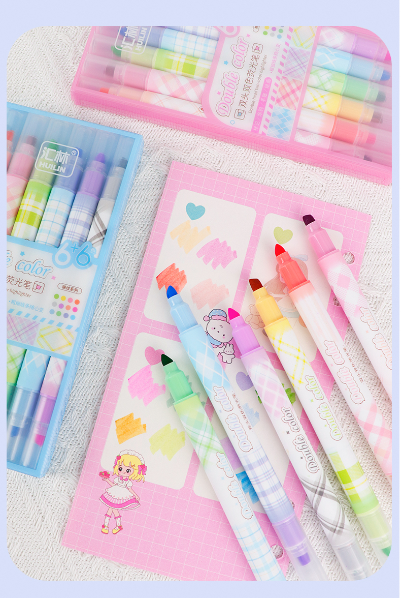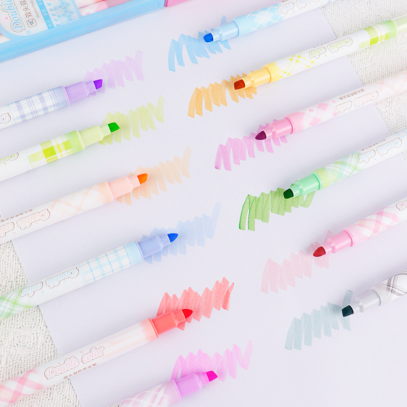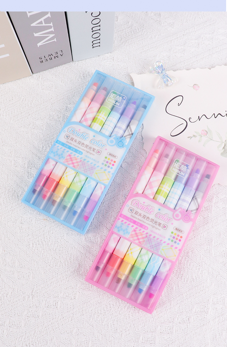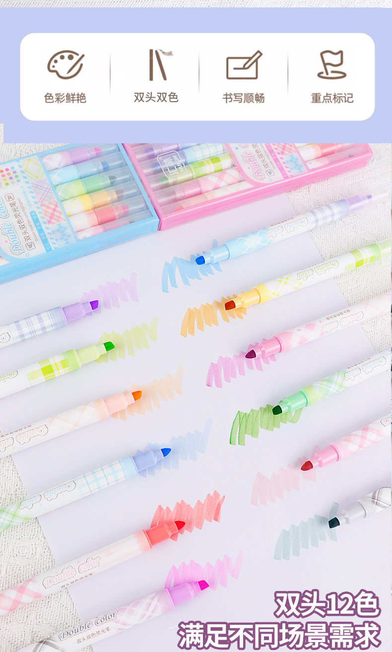 12色荧光笔双头双色