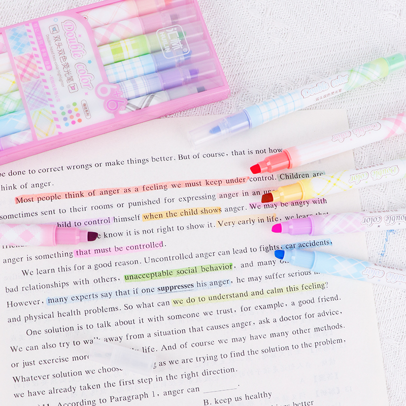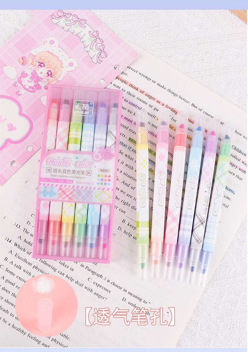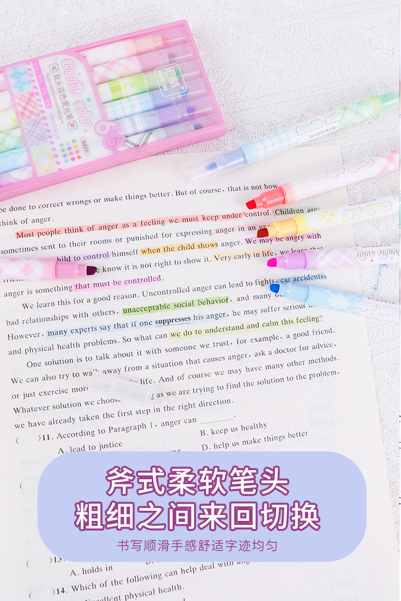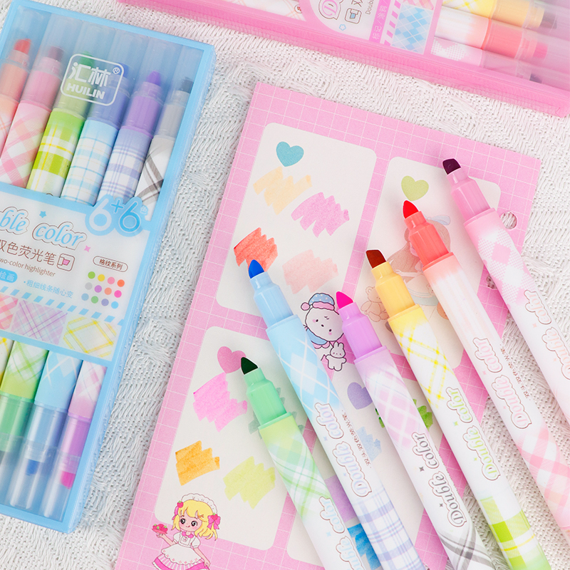 12色荧光笔双头双色
