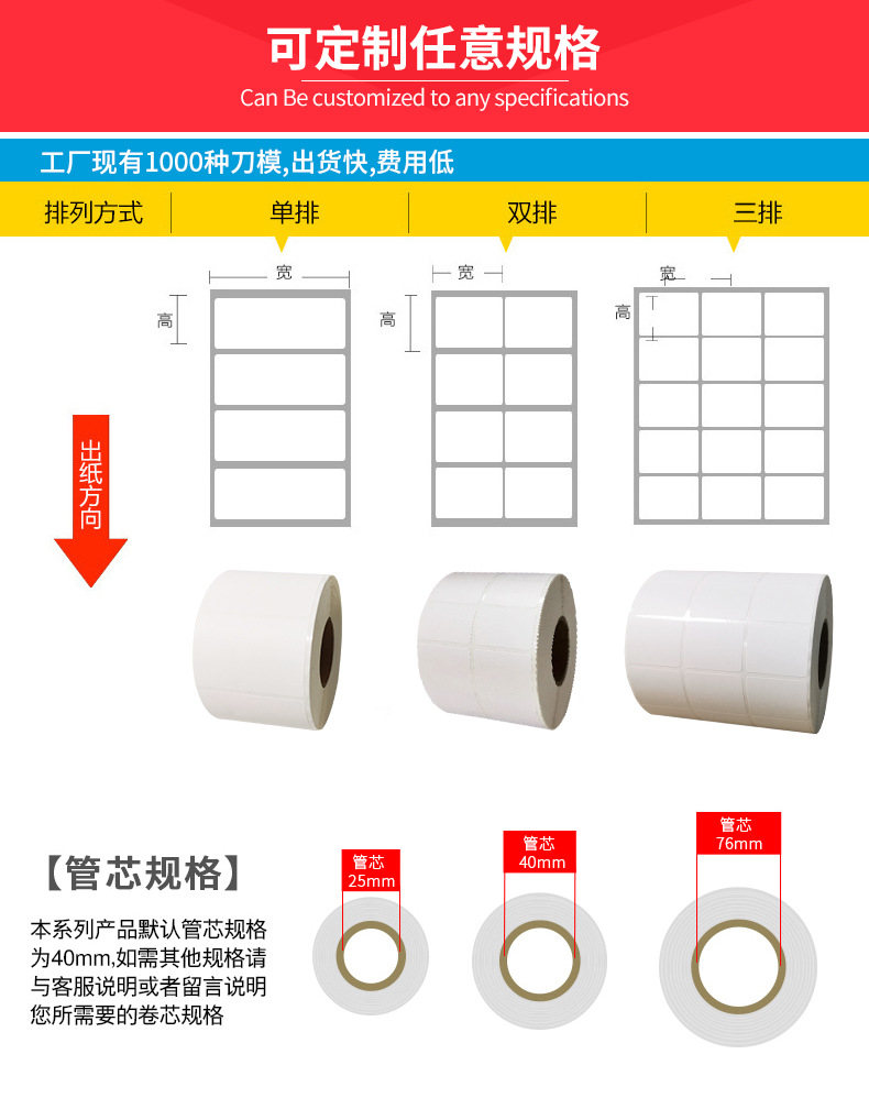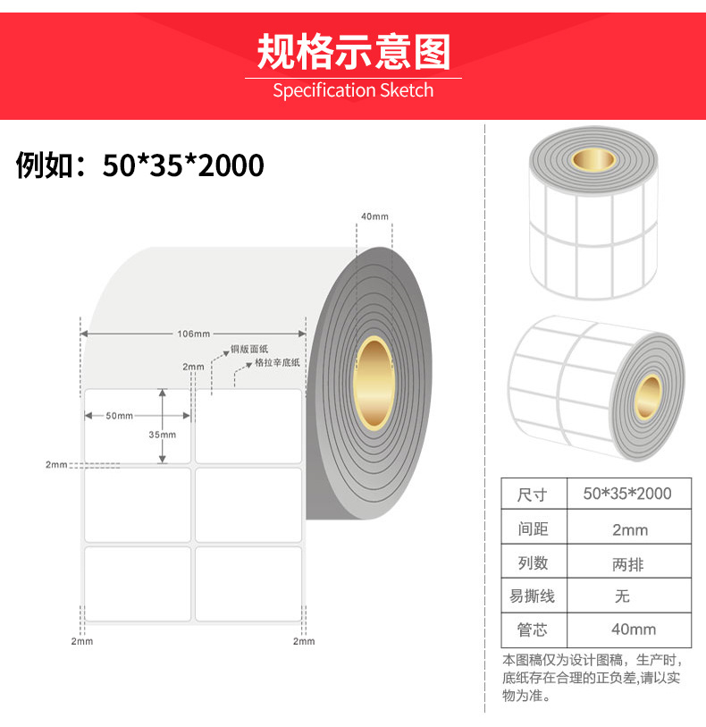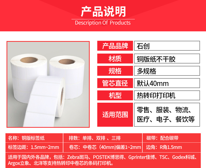 厂家直销铜版纸标签50x30mm/60x40mm/ 70x50mm服装吊牌食品日化物流贴纸