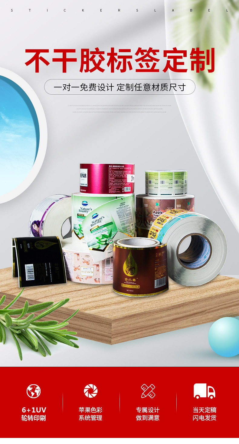 透明BOPP贴纸矿泉水标签贴纸pet透明不干胶标签贴纸不残胶透明贴